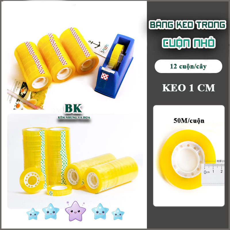 Băng keo trong 1cm loại tốt, dày, siêu dai, dính tốt, làm bó hoa tươi, hoa handmade